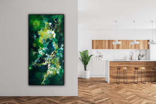 DRUMURI DE SMARALD - Pictură originală pe pânză, artă abstractă în nuanţe verzi